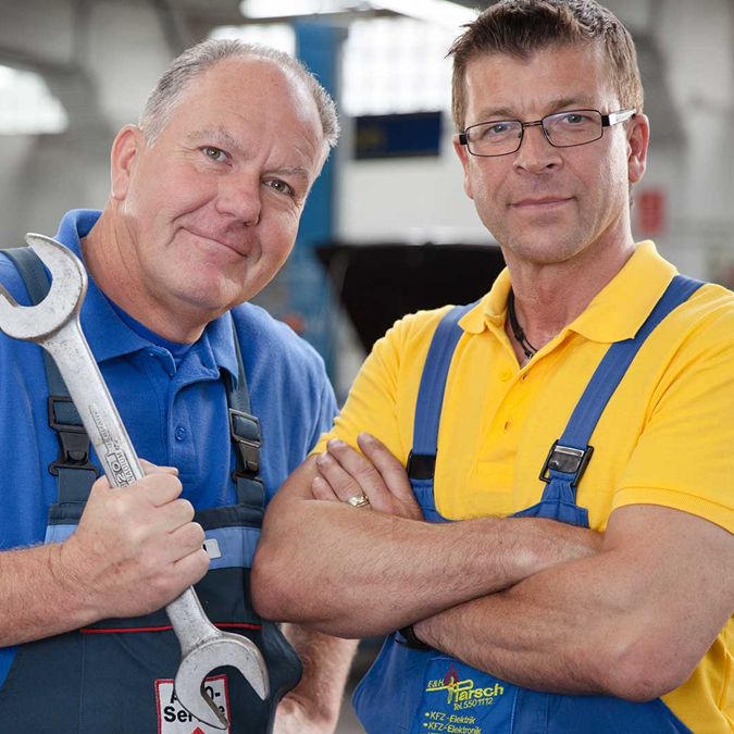 „Nebenbei“ leiten wir auch jeweils noch unsere eigenen Werkstätten und sind im Vorstand der Kfz-Innung Köln und in den Prüfungsausschüssen tätig.