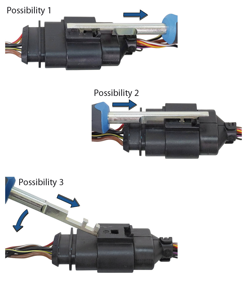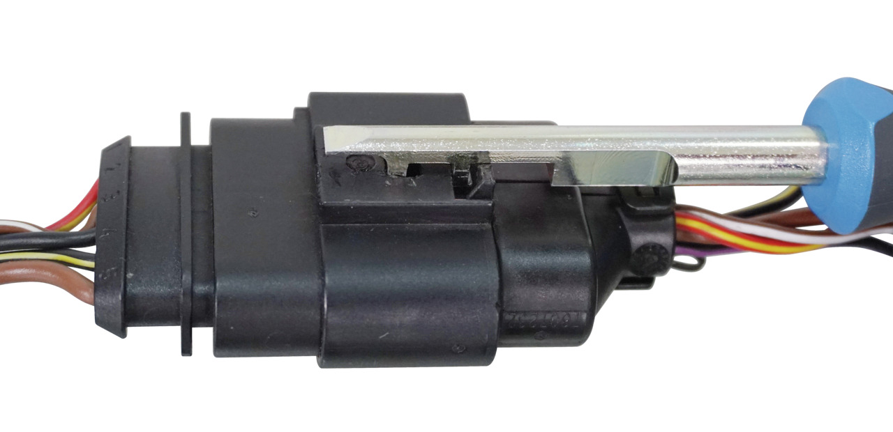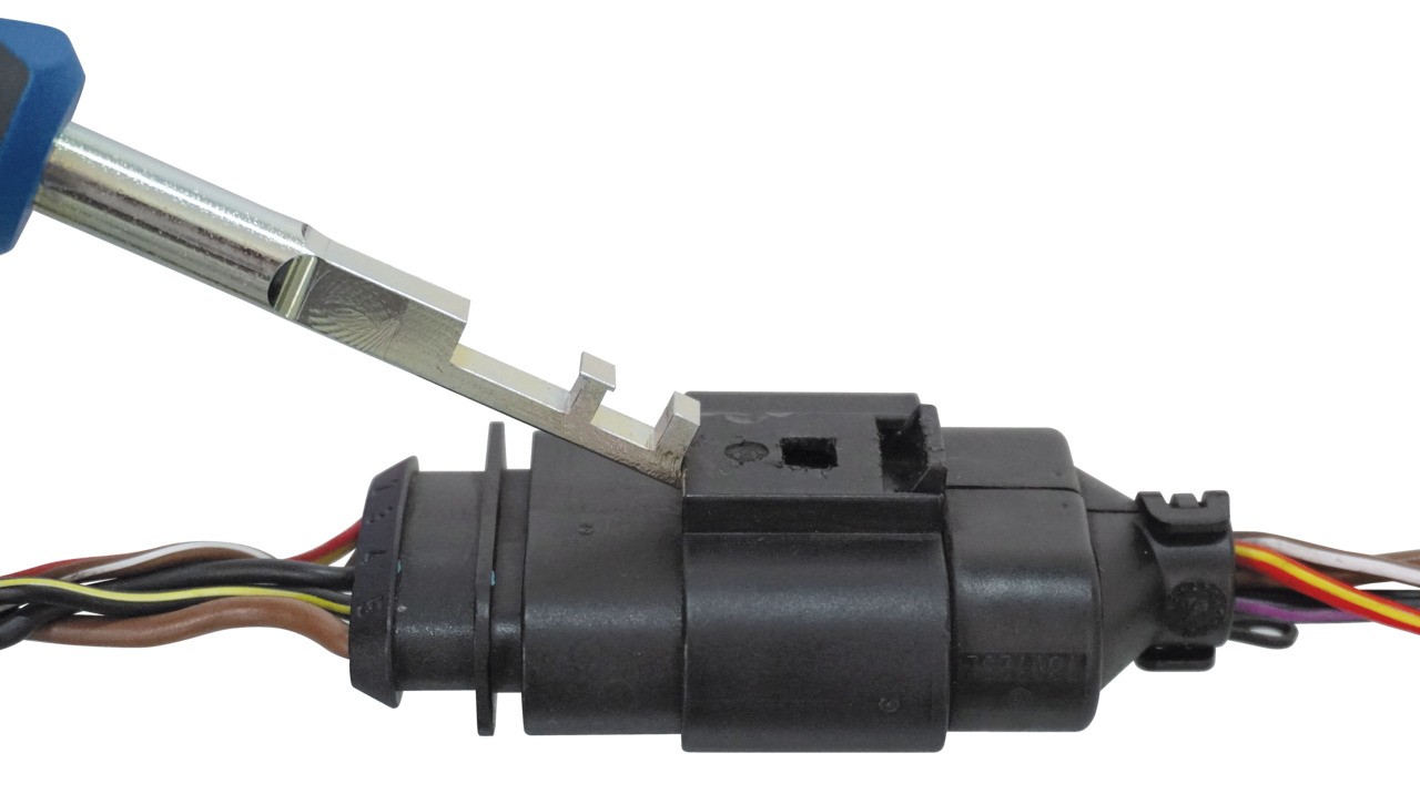 Zum fachgerechten und zerstörungsfreien Entriegeln von Kabelsteckern z.B. an Luftmassenmessern, Zündspulen sowie Scheinwerfern etc., Die einzigartige Konstruktion des Entriegelungswerkzeugs ermöglicht ein beidseitiges Entriegeln des Kabelsteckers sowohl ziehend von hinten als auch drückend von vorne., Dabei greift das spezielle Profil vollständig und zerstörungsfrei in die Entriegelungslasche am Kabelstecker., Selbst bei abgebrochener Entriegelungslasche kann der Kabelstecker ohne Probleme entriegelt werden!,