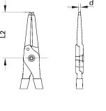 Für Sicherungsringe nach DIN 472, DIN 984 Ausführung nach DIN 5256 Form C Gerade Backen Zangengrundkörper aus GEDORE Chrom-Vanadium Sondervergütungsstahl Eingedrückte Spitzen aus hochverschleißfestem Wälzlagerstahl Verwindungshemmende Spitzengeometrie Geschraubte Gelenkverbindung Stahlgrau, mit blau getauchten Antirutsch-Griffen