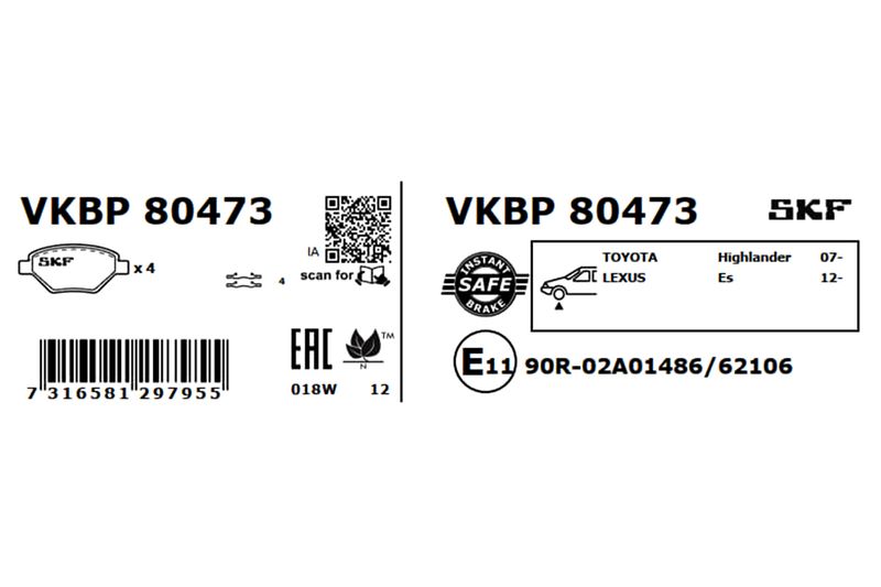 Produktinformationen "SKF Bremsbelagsatz, Scheibenbremse (VKBP 80473)"