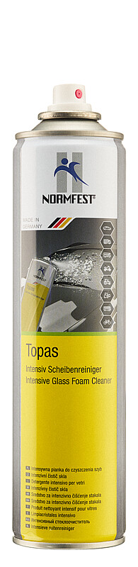<p>Der Intensiv-Scheibenreiniger kommt in einer handlichen 400ml Dosierung und ist speziell formuliert, um anhaftende Verunreinigungen wie Insektenkörper, Straßenschmutz, Nikotin, Fett, Silikon und Gummiabrieb effektiv von Autoscheiben, Scheinwerfern (auch aus Polycarbonat) und Lackflächen zu entfernen. Dank seiner intensiven aber schonenden Formulierung, greift das Produkt keine Oberflächen an und ist auch für Polycarbonatglas geeignet.</p><p>Das Produkt wird als Schaum ausgebracht, der erst nach dem Benetzen der Oberfläche entsteht. Dies bietet den Vorteil, dass er auch auf senkrechten Flächen haftet und eine starke Reinigungskraft an den Tag legt. Der Topas Scheibenreiniger bringt neuen Glanz auf alle gereinigten Oberflächen und verhilft zu einer uneingeschränkten Sicht, ohne die Materialien zu beschädigen. </p><p>Der Reiniger ist nicht nur für den Fahrzeugbereich geeignet, sondern auch für Oberflächen in der Lebensmittelverarbeitung und im Transport. Es besitzt eine InS A1 Zulassung und ist als allgemeiner Reiniger verwendbar, sollte jedoch nicht in direktem Kontakt mit Lebensmitteln kommen.</p><p>Der Scheibenreiniger besteht aus einer Zusammensetzung von Tensiden, Lösungsmitteln, Wasser und verschiedenen Stoffen und ist dabei silikonfrei. Für Materialien, die bekanntermaßen auf die enthaltenen Lösungsmittel (z. B. Alkohole) reagieren, wird empfohlen, einen Testlauf an einer unauffälligen Stelle durchzuführen. </p><p>Ob für die Werkstatt, den professionellen Detailer, oder den verantwortungsbewussten Heimwerker – der Topas Scheibenreiniger bietet eine effektive Reinigungslösung, die streifenfreie Sauberkeit und neuen Glanz auf Glasscheiben und andere Oberflächen bringt. Als multifunktionales Produkt, das starke Reinigungskraft mit materialschonenden Eigenschaften verbindet, bietet es Anwendern von KFZ, NFZ, Caravan und Agrar den richtigen Durchblick und damit Sicherheit.</p>