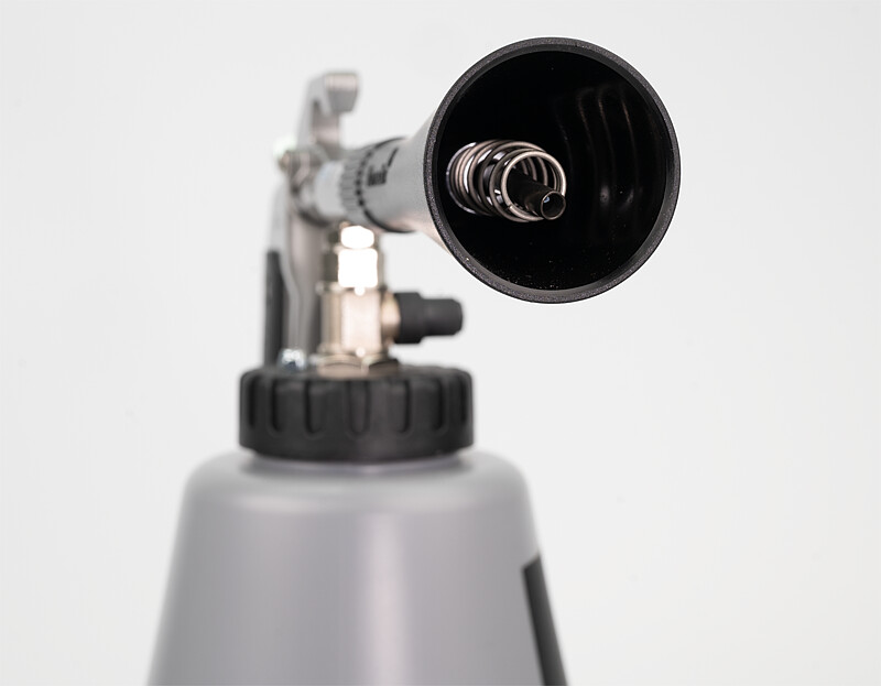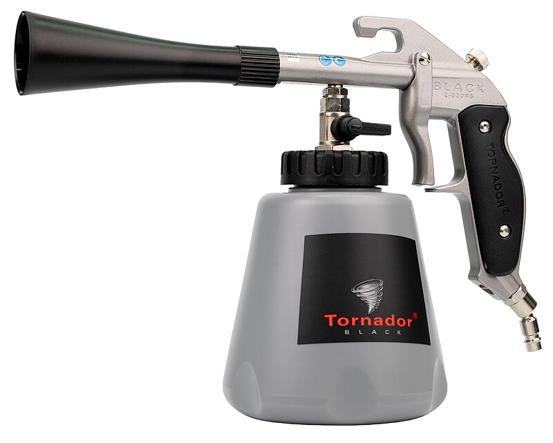 Die Tornador-Gun Black setzt neue Maßstäbe in der professionellen Fahrzeug- und Industriereinigung. Die Besonderheit dieser fortgeschrittenen Reinigungspistole liegt in ihrer impulssteigernden Feder, welche bereits bei einem Druck von 4,5 Bar ihr volles Leistungspotential entfaltet. Es wird eine besonders feine Mikrozerstäubung erzeugt, welche eine gründliche und effektive Reinigung ermöglicht.