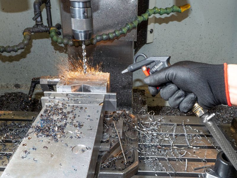 •Schnelles Säubern oder Entfernen von Spänen und anderenFremdkörpern•Langlebiges Aluminium Gehäuse•Aufhängevorrichtung eingearbeitet•Kupplungsstecker: Nennweite 7,2 (inklusive)•Luftanschluss Einlass: Innengewinde 12,91 mm (1/4″)•Betriebsdruck (bar): 6 bar•Handgriff: Kälteisolierender Griff•Schall-Druckpegel (bei Betriebsdruck): 102 dB(A) Lp A•Schlauchdurchmesser (empfohlen): 10 mm
