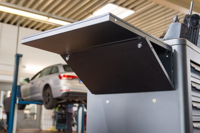 •Zusätzliche Ablagefläche für Laptop, Tablets, Werkzeugeoder Kfz-Bauteile•Passend für alle Serien•Auf- und zuklappbar im montierten Zustand•Erweiterung der Werkstattwagen-Oberfläche für mehr Ordnungund Übersicht beim Arbeiten•Arretierung verhindert unbeabsichtigtes Einklappen desTisches•Maximal zugelassene Belastbarkeit: 25 kg•Inklusive Schrauben•Maße (L x B): 406 x 394 mm•Abmessungen / Länge: 406 mm x 394 mm